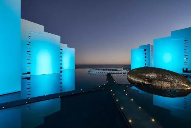酒店位于Jabal Ithlib(立石山)南部边缘,从远处看去,整个建筑渐渐隐去,消逝在沙漠里。